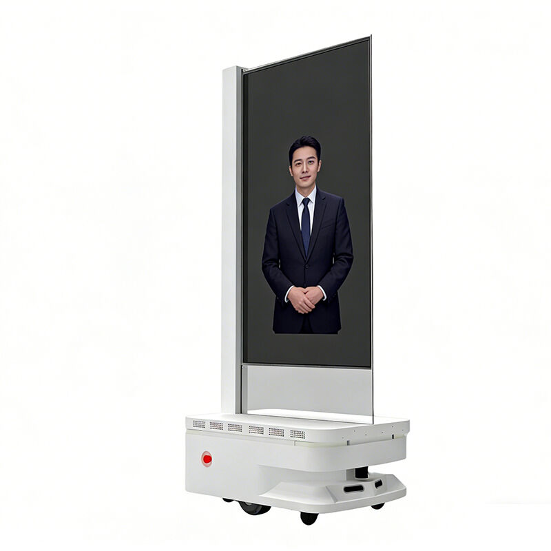 55 Inch Intelligent Robot Transparent Display An intelligent mobile advertising solution featuring dual HD displays, voice interaction, and facial recognition. It navigates autonomously, avoids obstacles, and offers 7.5 hours of operation—perfect for malls, airports, exhibitions, and hotels.